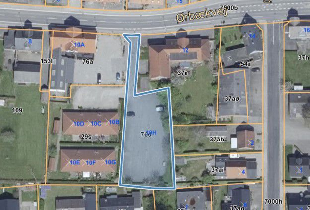 Faaborg-Midtfyn Kommune udbyder matr.nr. 76d, Gislev, beliggende Ørbækvej 10H, Gislev, til salg. Arealet er for nuværende udlagt til parkeringsplads.