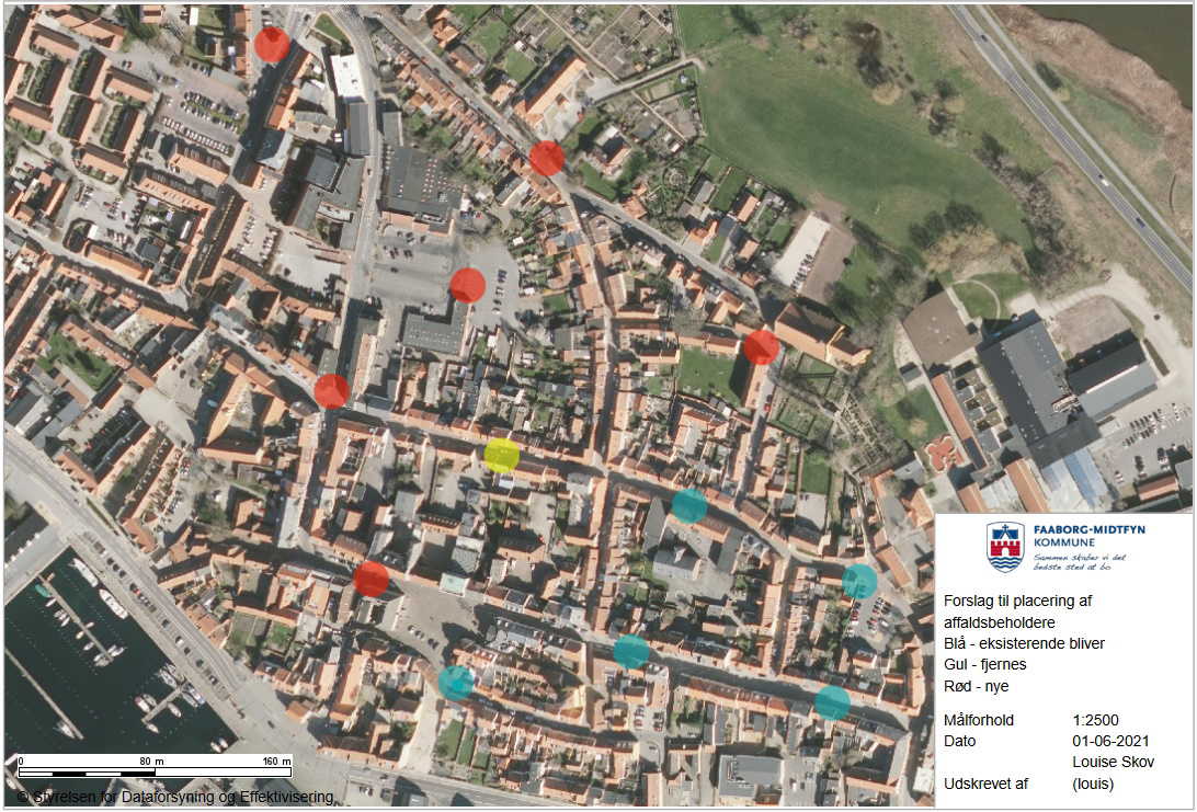 I Faaborg midtby er kravene til sortering i 10 typer af affald de samme som andre steder. Men på grund af smalle stræder og baggårde, er det ikke muligt at opstille individuelle beholdere til affaldet. Ligesom ved resten af kommunens husstande ville der skulle opstilles to 240 liters beholdere og en spand til plastik plus drikkekartoner, og det er ikke muligt.