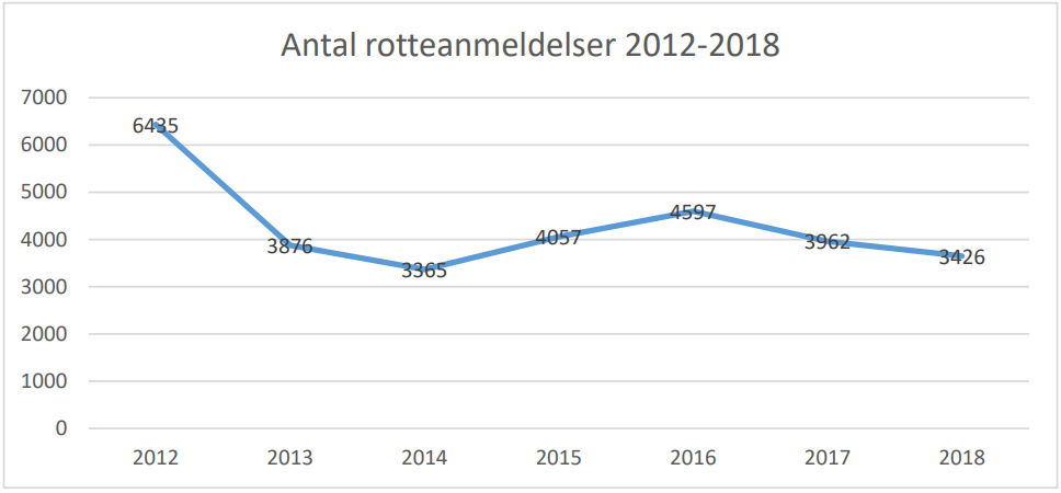 Det høje antal årlige anmeldelser i 2020 skyldes formentligt, at mange af kommunens borgere var hjemme som følge af Covid-19. Derfor blev flere også opmærksomme på nye såvel som gamle tegn på rotter. Siden 2020 er antallet af anmeldelser faldet til et lavere niveau end før Covid-19.