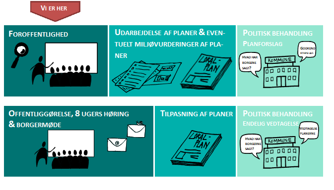 Ud fra ønskerne samt eventuelle nye ideer udarbejdes forslag til ny kommuneplanlægning og eventuelt også mere detaljeret planlægning i form en lokalplan. Indkomne ideer vil desuden indgå i miljøscreeningen af pla-nen.