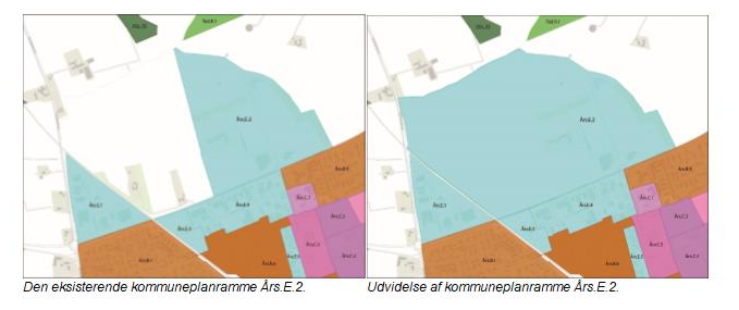 Der er set på udviklingsmulighederne for erhvervsarealer i Årslev, og det foreslås, at arealet mellem de to kommuneplanrammer: Års.E.1 og Års.E.2, inddrages til erhvervsformål. Området ligger i landzone, og stør-stedelen af området er ikke omfattet af kommuneplanramme. Kun en mindre del af området mod nordøst er omfattet af kommuneplanramme Års.E.2. En udvidelse af kommuneplanramme Års.E.2 er i overensstem-melse med kommuneplanen retningslinje for byvækstretninger i Årslev.