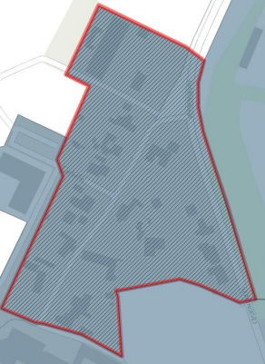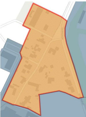 Figur 2: Opland BRO010 efter opdatering af spildevandsplanen. Området er markeret af spildevandsplanen. Området er markeret som separatkloakeret (blå) og med mulighed for at udtræde for regnvand (skravering)