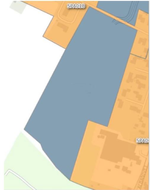 Figur 6: Efter opdatering. De 3 byggegrunde er nu en del af opland SPA002 og skal separatkloakeres