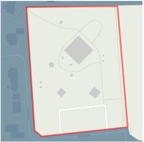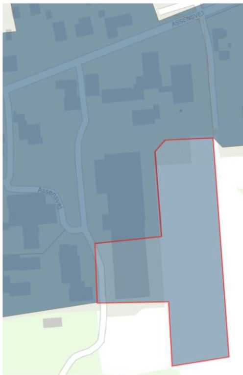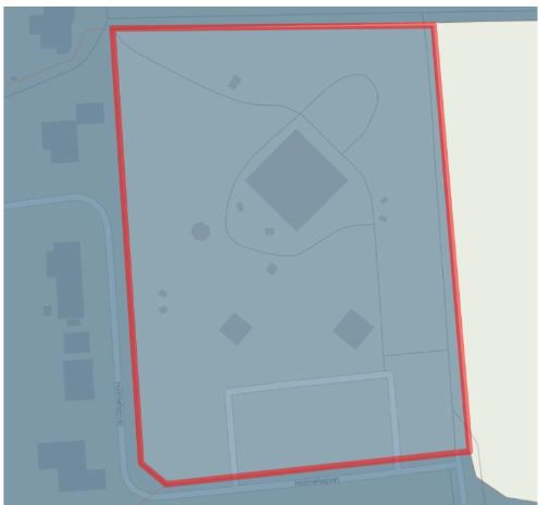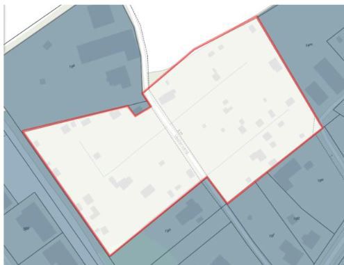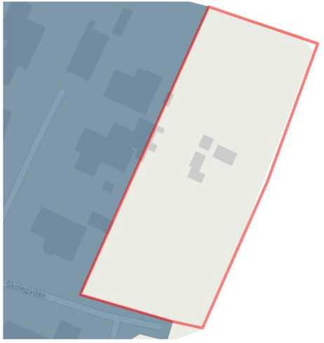 Figur 17: Før opdatering. Den nuværende spildevandsplan omfatter ikke alle bygninger tilhørende Hjemly Fri- og Efterskole.