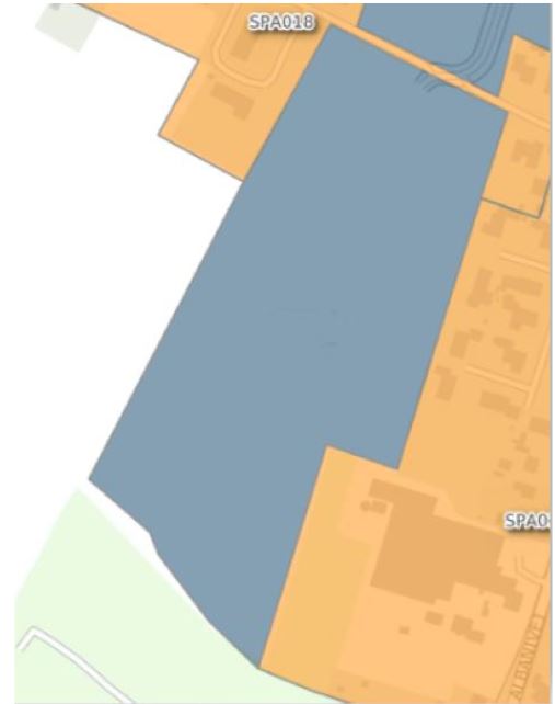 Figur 6: Efter opdatering. De 3 byggegrunde er nu en del af opland SPA002 og skal separatkloakeres