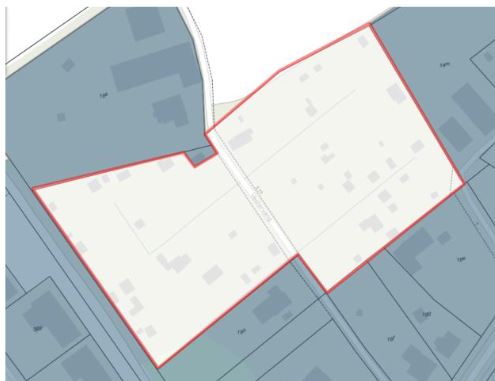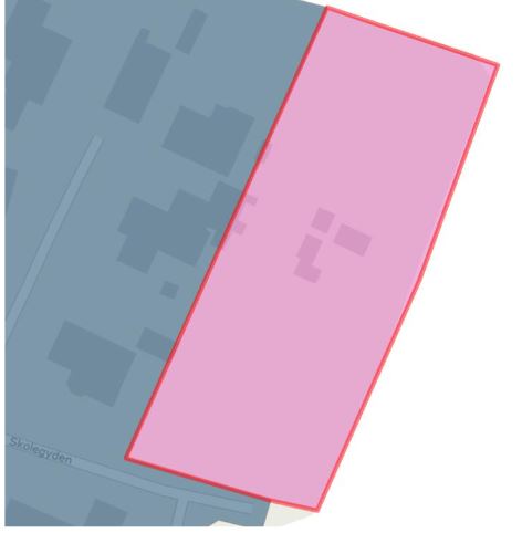 Figur 17: Før opdatering. Den nuværende spildevandsplan omfatter ikke alle bygninger tilhørende Hjemly Fri- og Efterskole.