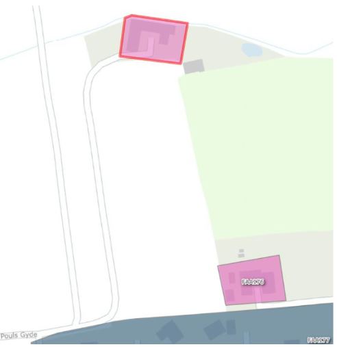 Figur 12: Efter opdatering. Poul Gyde 20 er kommet med i opland FAA176 og skal spildevandskloakeres. Regnvand skal håndteres på egen grund