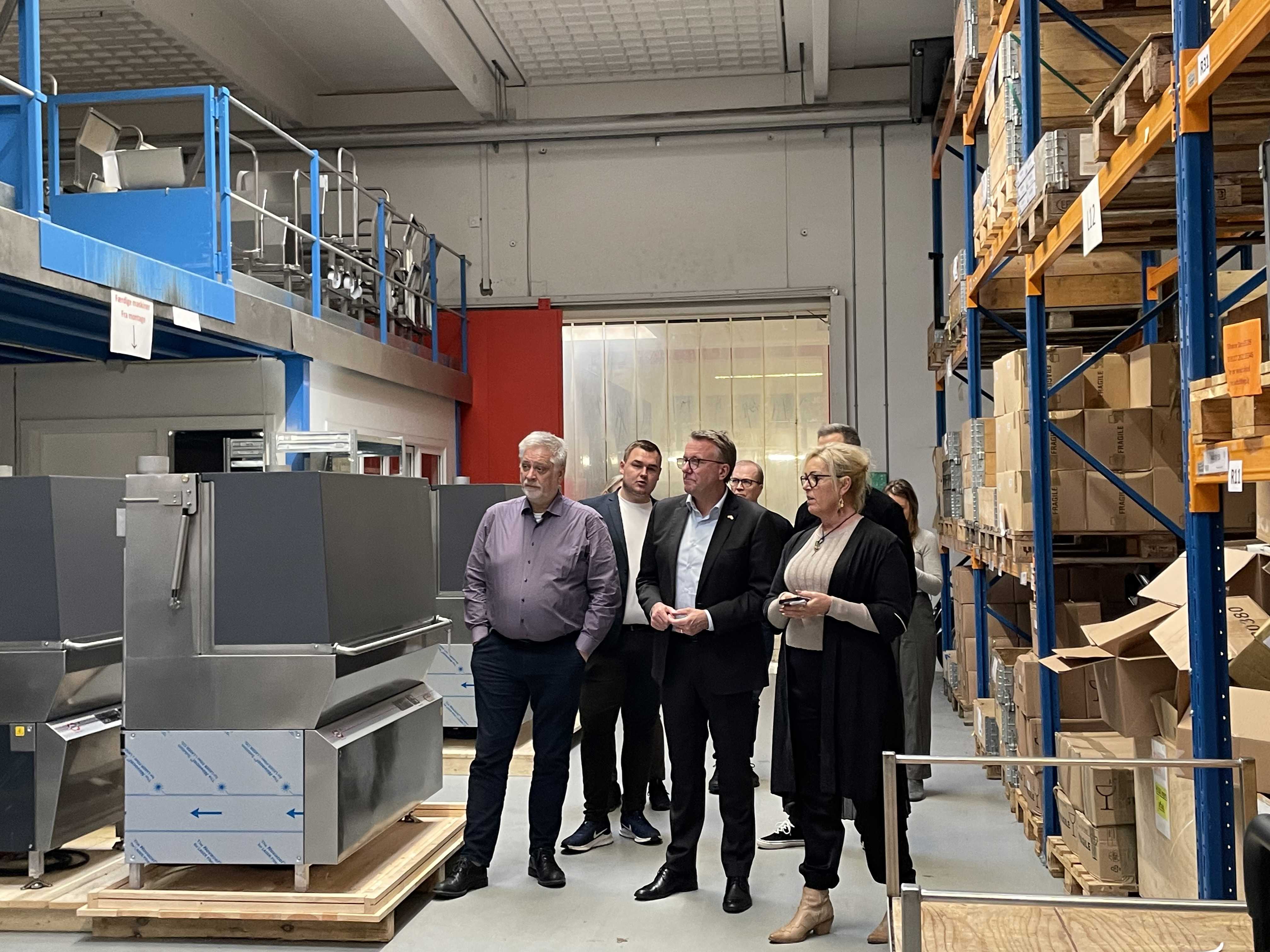 Mandag d. 9. januar besøgte erhvervsminister Morten Bødskov (S) sammen med borgmester Hans Stavnsager den lokale opvaske- og rensemaskinefabrik Jeros A/S på Nyborgvej 8 i Ringe.