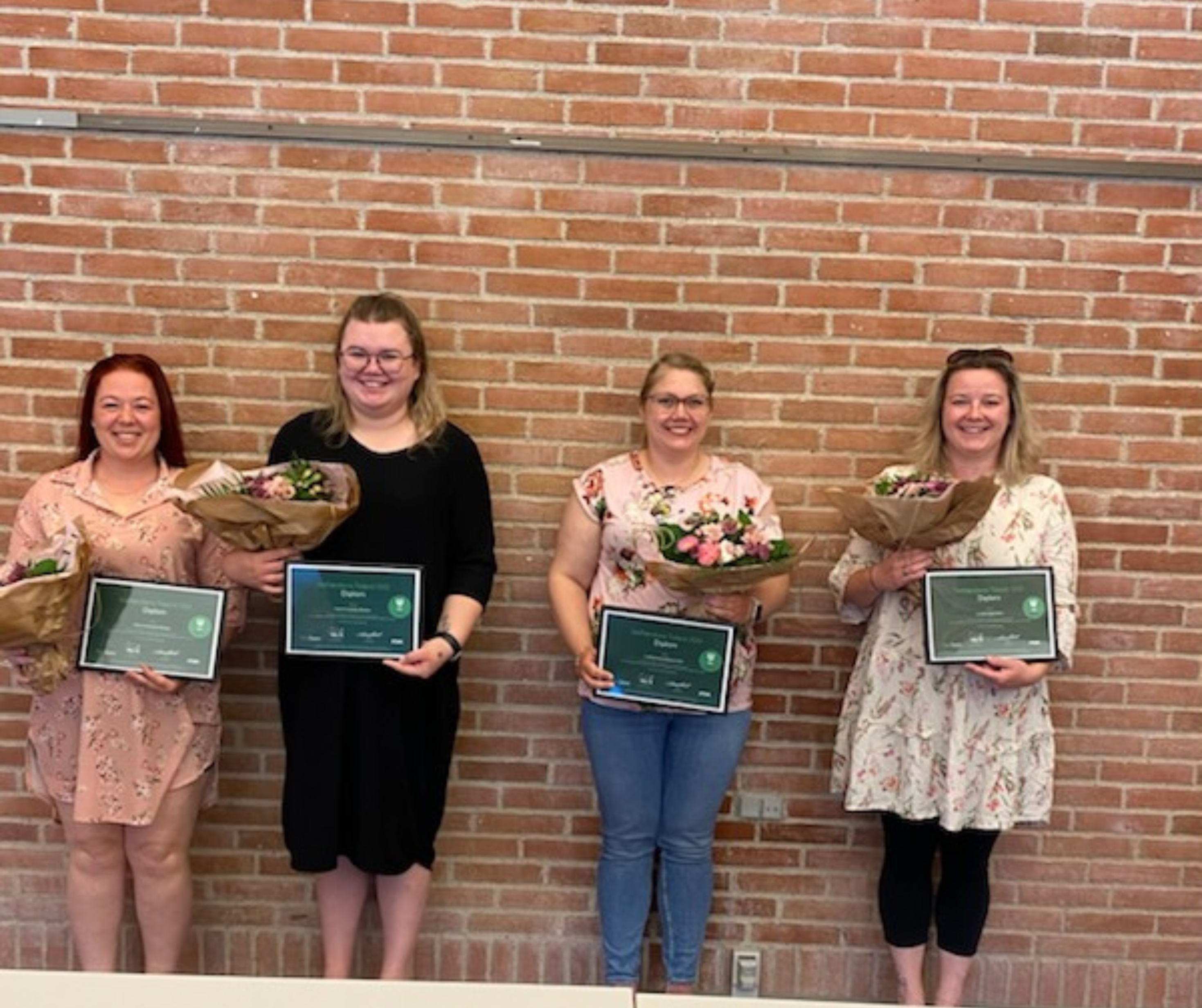 Faaborg-Midtfyns nye velfærdstalenter blev fejret med blomster og diplomer sidste weekend. Fra venstre: Bettina Witthøfft Wiese Witt, Cathrine Priess Kristensen, Line Thulstrup Stylsvig Winter og Pernille Cecilie Bonde.