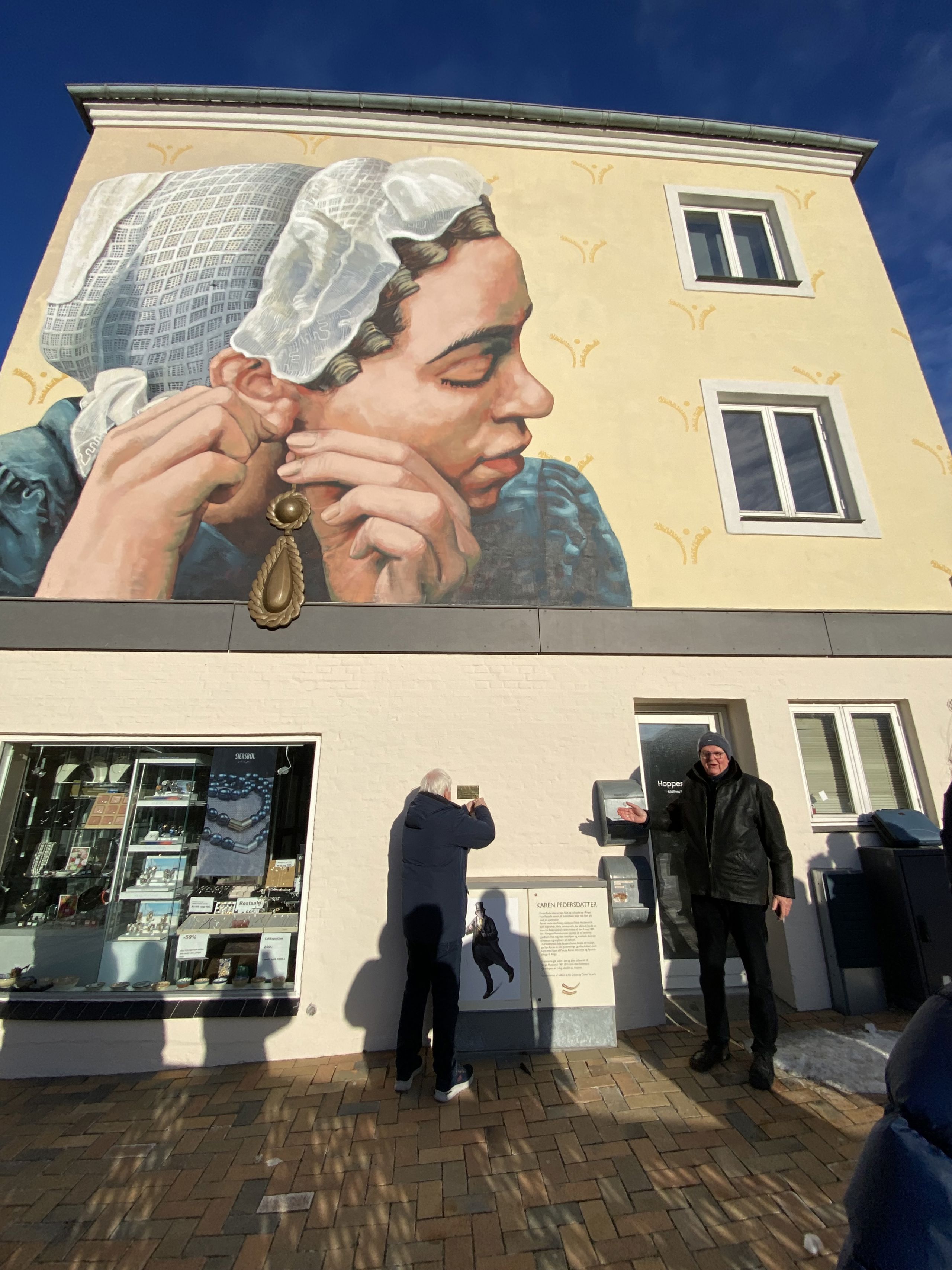 Tirsdag blev opsat en lille messingplade under det store gavlmaleri af Karen Pedersdatter med guldberlokkerne på Torvet i Ringe.